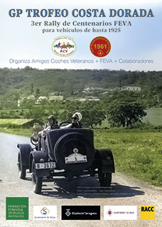 Amigos de los Coches Veteranos, CIF G60319605, domiciliado en 08037-Barcelona, carrer Rosselló, 258, 3º 2ª, Club Decano de la Afición a los Automóviles Antiguos y Clásicos de Colección, fundado el 13/1/1961, ha sido designado por la FEDERACIÓN ESPAÑOLA DE VEHÍCULOS ANTIGUOS, (FEVA), para llevar a cabo la Organización del Rally GP Trofeo COSTA DAURADA para vehículos fabricados hasta 1925, III Rally Centenarios.